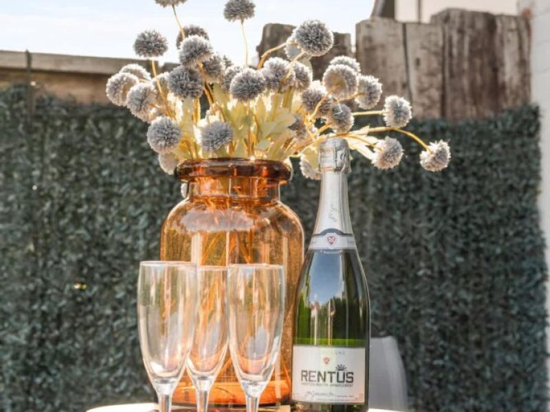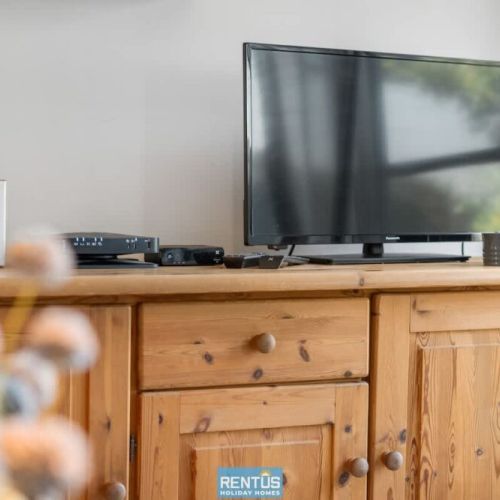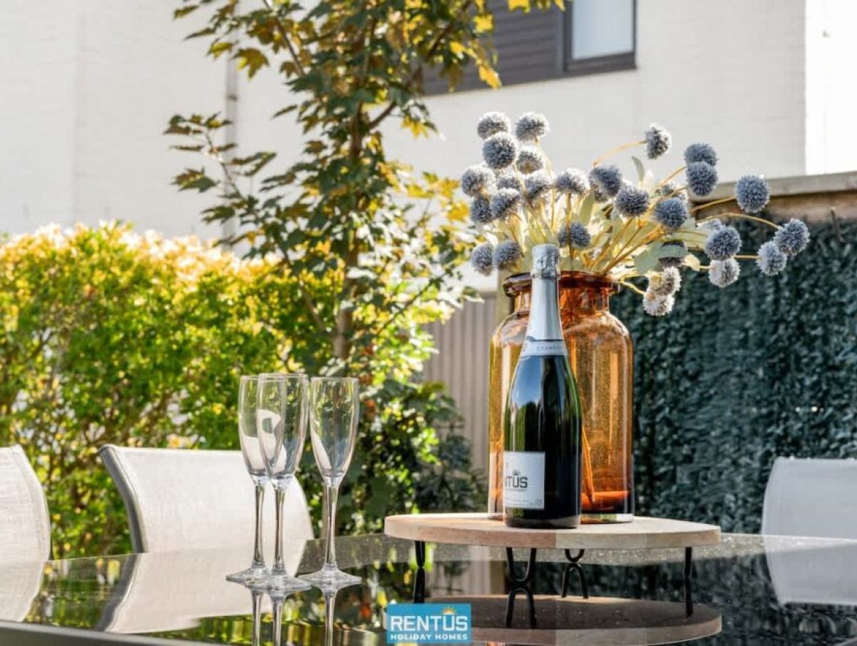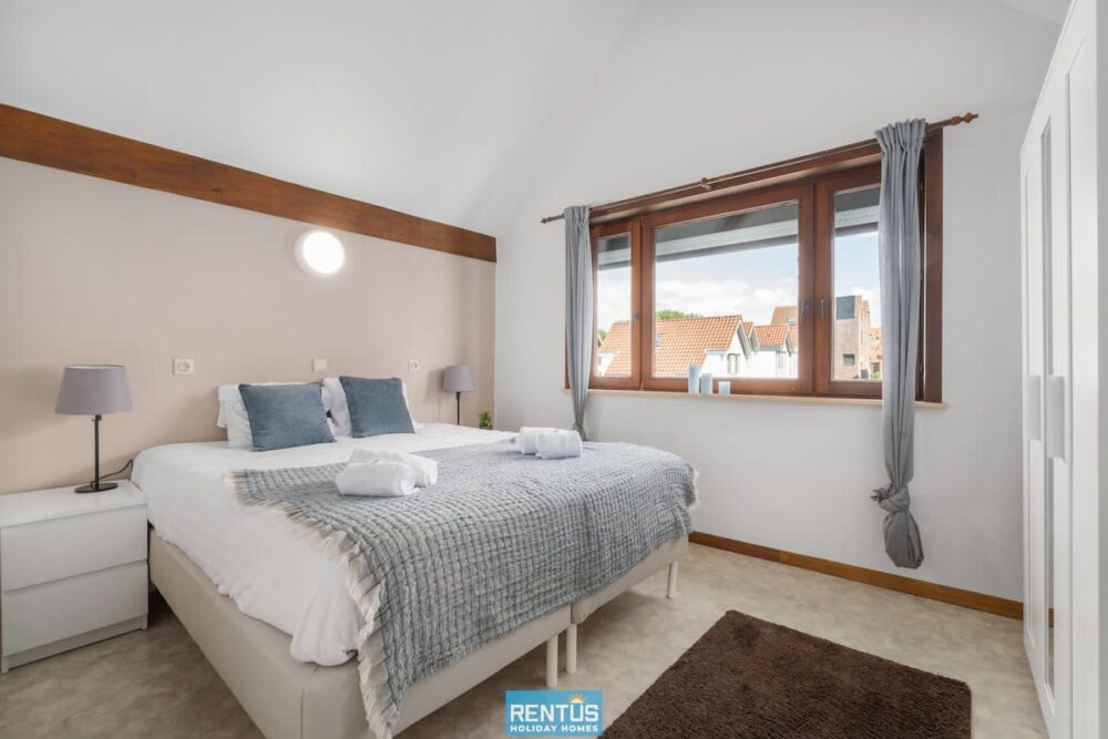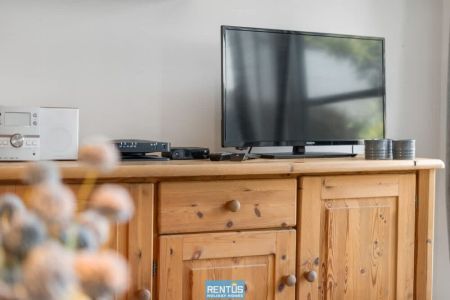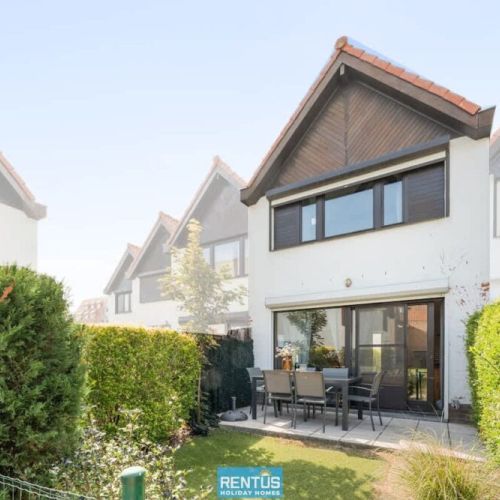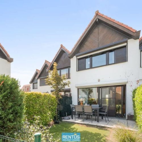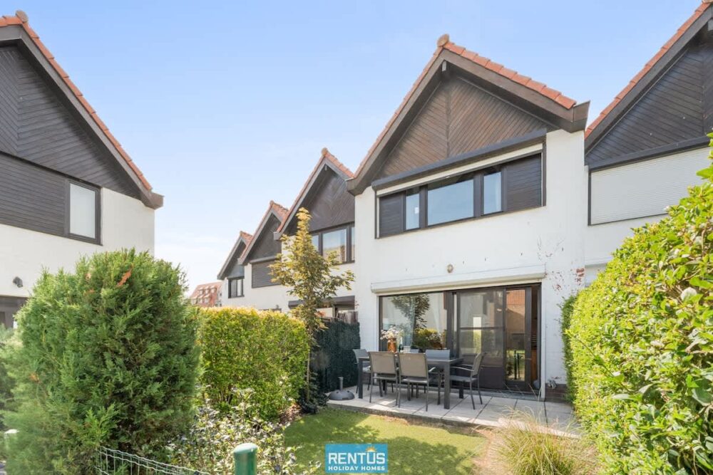 The house features an open and compact living space with a cosy lounge and fully equipped kitchen – everything you need for a comfortable stay. From the living room, there is direct access to the enclosed sun-facing garden with garden furniture: perfect for relaxing or enjoying meals outdoors.