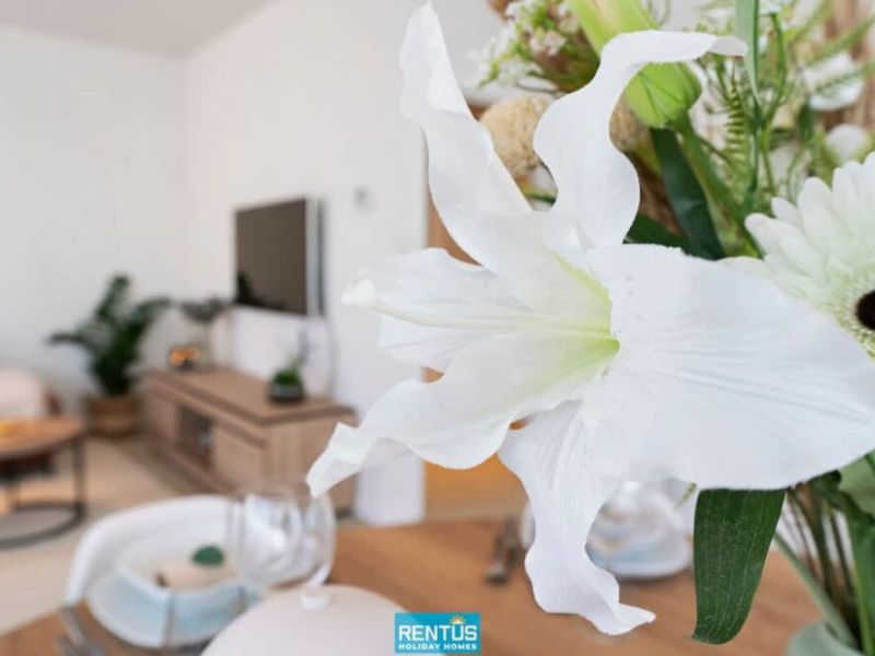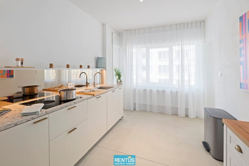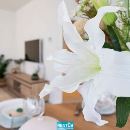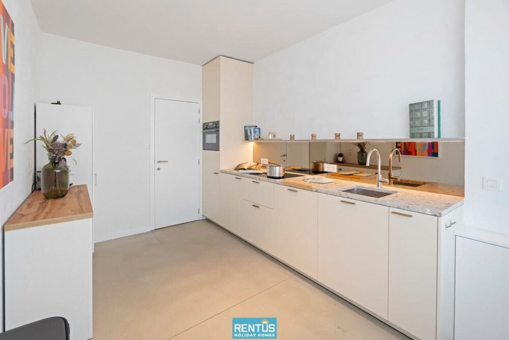 The fully equipped kitchen has all the amenities to effortlessly prepare tasty meals during your stay, including a combination oven, dishwasher, toaster and kettle.