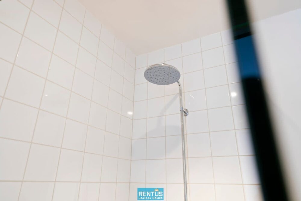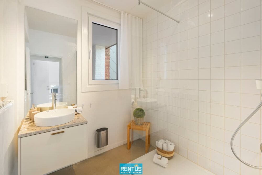 The modern bathroom has a shower and single sink. There is also a separate toilet in the hallway for extra comfort.