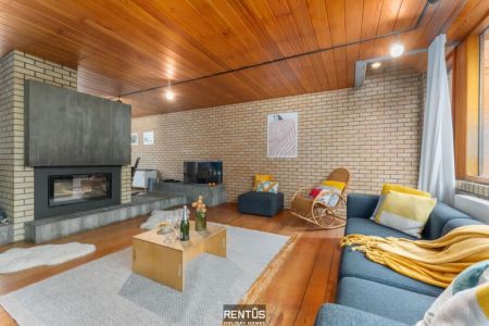 On the ground floor, there is an additional recreation room where you can watch TV, play table football or darts. From here, you also have direct access to the enclosed garden – a green and peaceful spot to fully unwind. A separate toilet is available in the hallway.